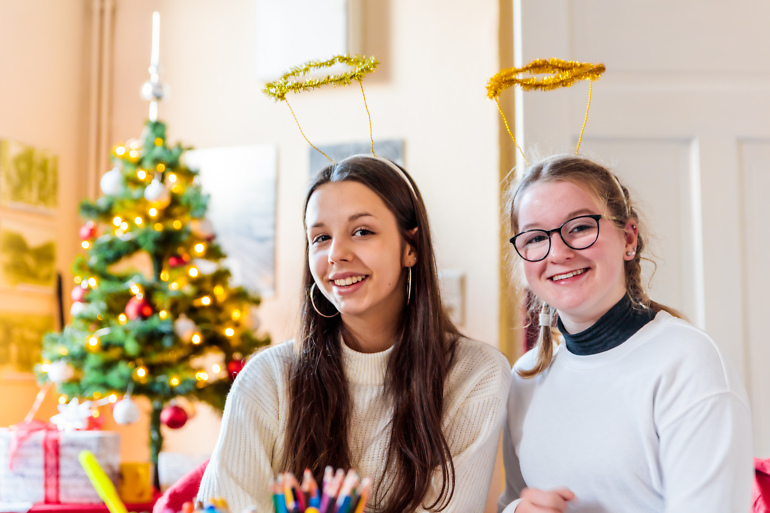 - Weihnachtliche Atmosphäre mit Deko, Lichtern und Musik
